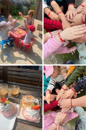 Připravili jsme pohoštění nejen pro děti, ale i pro celý tým školy. Počasí nám přálo, a tak jsme si oslavu mohli užít venku na zahradě.