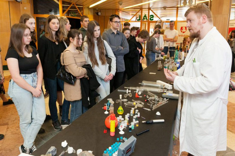 Nechtěli jsme soutěž jen pro ty nejtalentovanější žáky, jako je například Chemická olympiáda. Naopak jsme se rozhodli jít cestou „odspodu“ a udělat ji přístupnou pro co nejvíc dětí. Takže jsme zvolili zábavnější formu. V testech jsou kvízy, křížovky, doplňovačky a rébusy. Děti se během toho něco naučí, ale zároveň je to baví. Díky tomu mohli učitelé zapojit celé třídy, ne jenom pár vybraných žáků. Kromě toho jsme chtěli, aby to nebylo jen o testech, a tak jsme začali dělat doprovodný program. Chemické pokusy, show, někdy i exkurze nebo přednášky pro učitele. Snažíme se, aby samotná účast byla pro učitele a žáky příjemným zážitkem, včetně toho, že jim zajistíme občerstvení, dárky, vytvoříme fajn prostředí. Aby věděli, že si jejich času vážíme